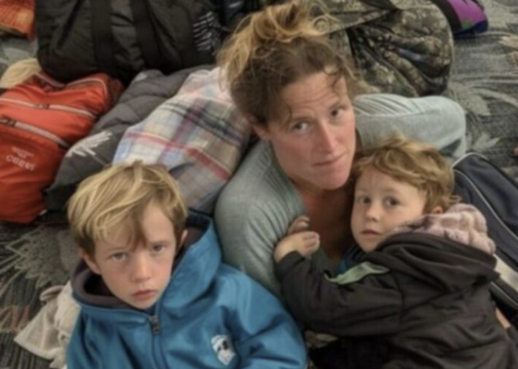 Cu doi copii mici, căruciorul lor și trei valize grele, a trebuit să mă descurc singură în aeroportul aglomerat și haotic.